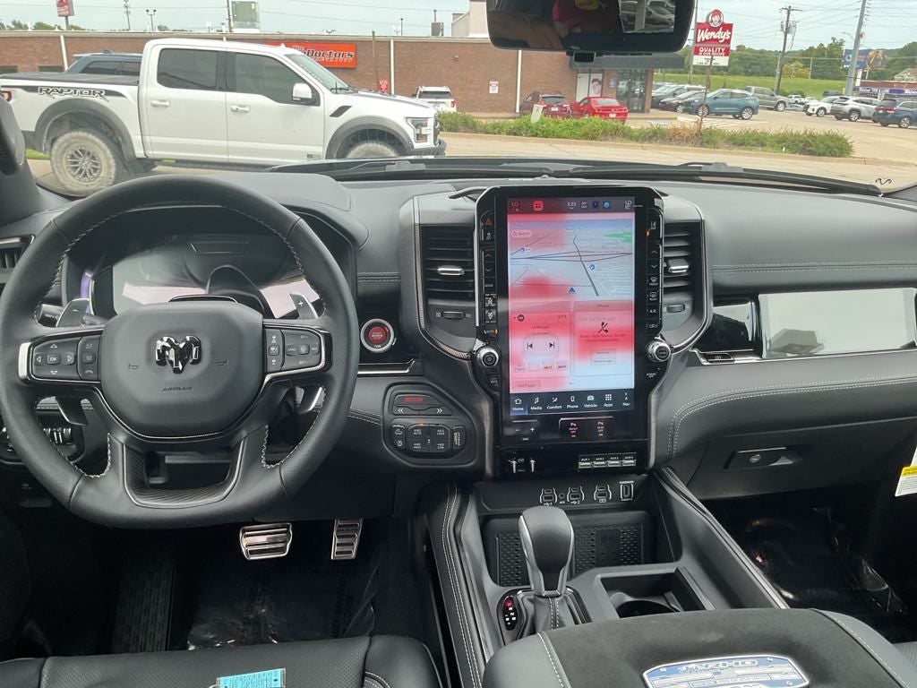 Experience luxury and performance with our 2025 RAM 1500 RHO Crew Cab 4X4 with the Level 1 and Mopar Packs in Diamond Black Crystal Pearl! Powered by a Twin-TurboCharged 3.0 Liter High Output Hurricane 6 Cylinder generating 540hp for an 8 Speed Automatic transmission with nine drive modes. Returning 16mpg on the highway, this Four Wheel Drive truck is a fearless trail machine with a high-speed E-Locker rear axle, an exclusive long-travel suspension, and extra ground clearance. Extra bold, our RAM's exterior showcases LED lighting, front/rear tow hooks, underbody skid plates, off-road fender flares, alloy wheels, and our Level 1 Pack for a power tailgate.