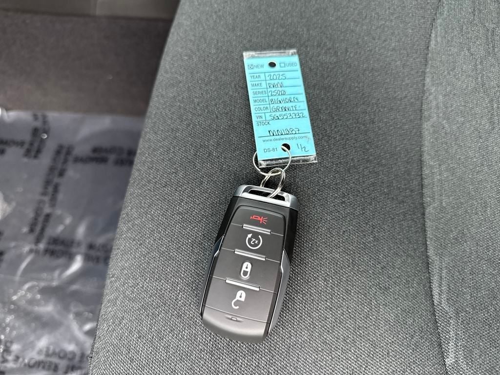 Diesel driven, our 2025 RAM 2500 Big Horn Crew Cab 4X4 with the Level 2 Plus Equipment Package rewards you with rugged capability for the long haul in Granite Crystal Metallic! Powered by a TurboCharged 6.7 Liter High Output Cummins Diesel 6 Cylinder serving up 430hp and 1075lb-ft of torque to an 8 Speed Automatic transmission for confident command of what comes next. A heavy-duty suspension offers composed handling under heavy loads, and this Four Wheel Drive truck answers the call of duty with compelling good looks. Check out the Level 2 Plus Equipment Pack's spray-on Bedliner, deployable bed step, LED lighting with fog lamps, heated automatic power trailer mirrors, alloy wheels, tow hooks, LED bed lighting, and a Class V hitch receiver.