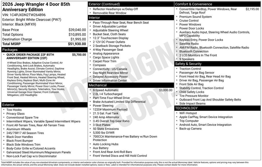 2026 Jeep WRANGLER 4-DOOR 85TH ANNIVERSARY EDITION