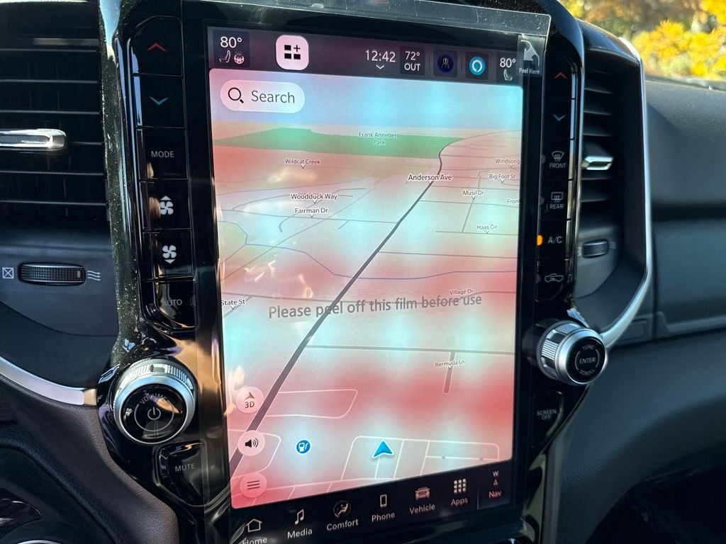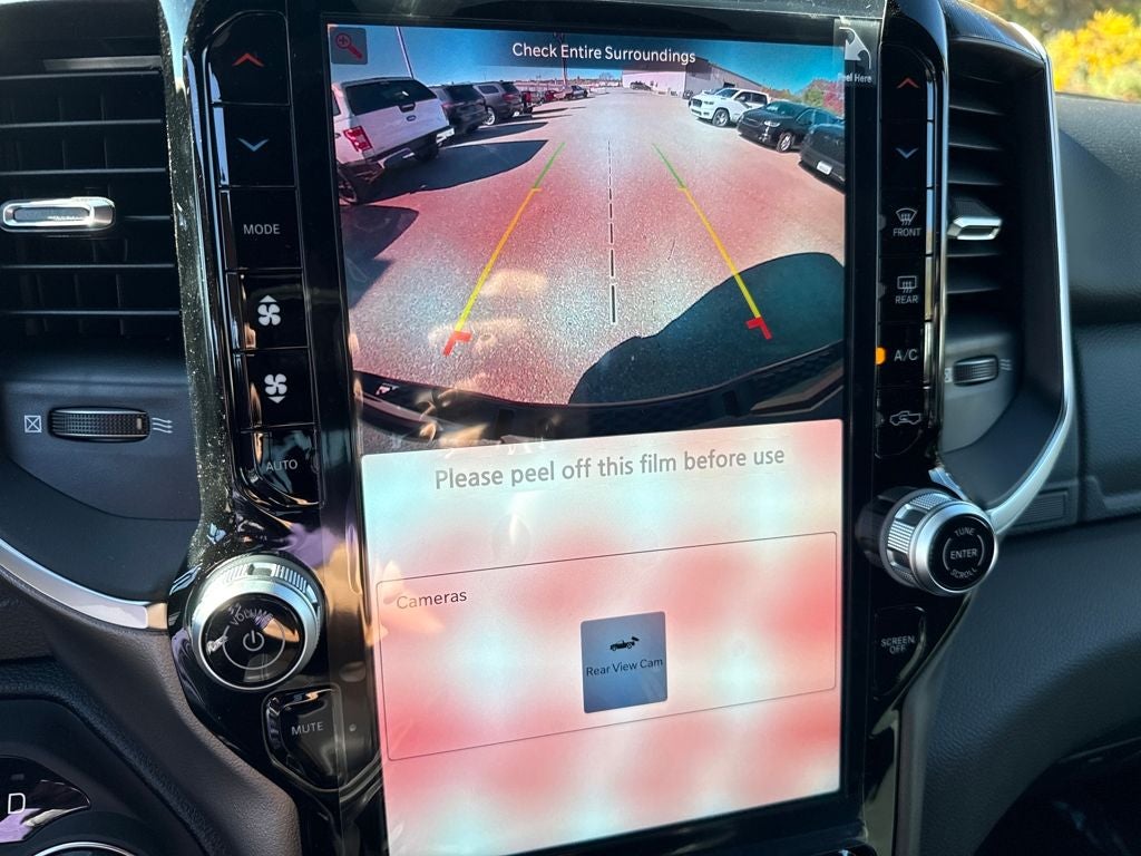 Our Big Horn cabin has been tailored to fit your needs, with the Level 2 Equipment Package's heated deluxe cloth seats, a heated leather-wrapped steering wheel, universal home remote, power adjustable pedals, power sliding rear window, dual climate control, a RAM Clean-Air System, keyless access, push-button ignition, cruise control, door-sill scuff plates, and clever cargo space, and a Uconnect 5 with 12.0-inch touchscreen features voice control, Bluetooth®, and a nine-speaker sound system for intelligent infotainment.