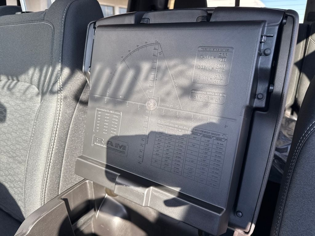 Our Big Horn cabin has been tailored to fit your needs, with the Level 2 Equipment Package's heated deluxe cloth seats, a heated leather-wrapped steering wheel, universal home remote, power adjustable pedals, power sliding rear window, dual climate control, a RAM Clean-Air System, keyless access, push-button ignition, cruise control, door-sill scuff plates, and clever cargo space, and a Uconnect 5 with 12.0-inch touchscreen features voice control, Bluetooth®, and a nine-speaker sound system for intelligent infotainment.