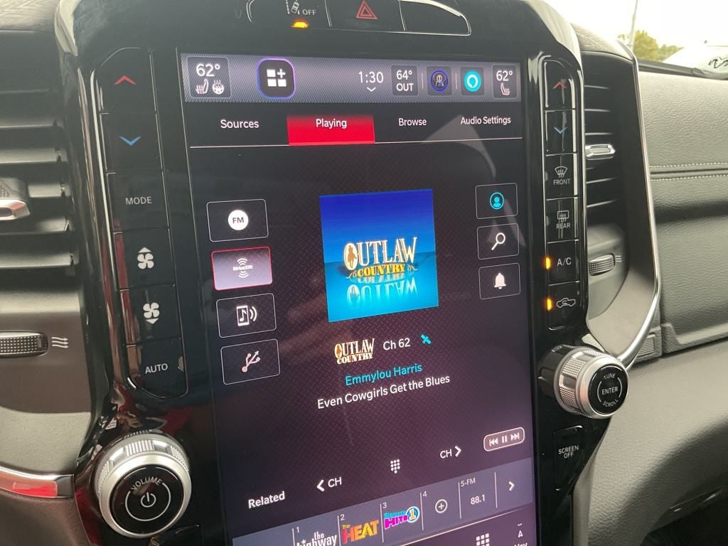 Even more rewarding features can be found in our Laramie cabin. Highlights include heated/ventilated leather power front and heated rear seats, a heated leather steering wheel, dual-zone automatic climate control, a power rear window, power-adjustable pedals, and 115V outlets. A 12-inch touchscreen and 7-inch driver display head up your mobile command post to support full-color navigation, WiFi compatibility, Apple CarPlay, Android Auto, Bluetooth®, voice control, and a nine-speaker sound system.