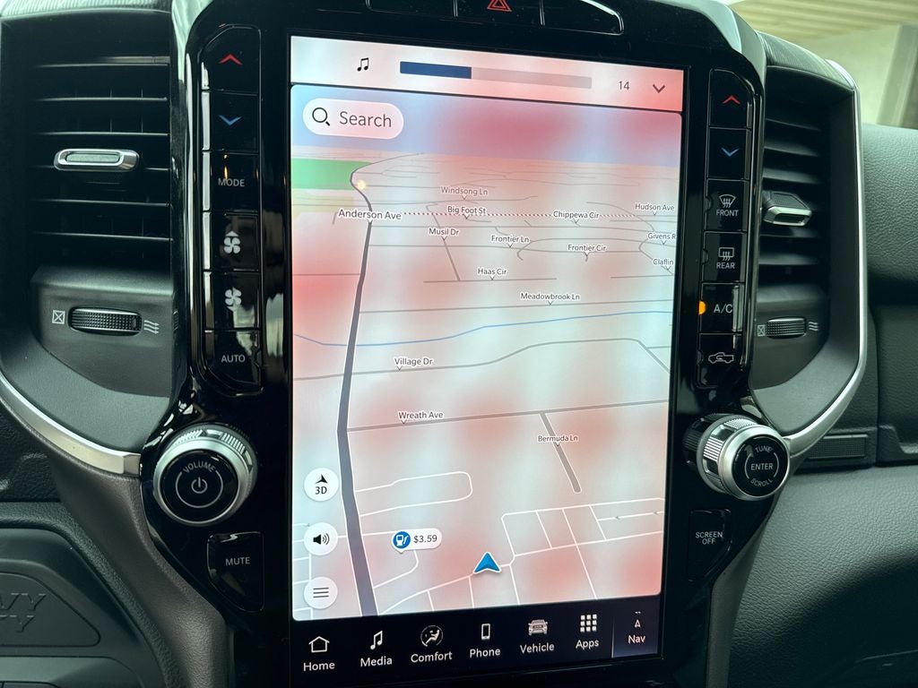 Our Big Horn cabin rewards you with satisfying features engineered for everyday use. It's easy to stay relaxed on the road with supportive cloth seats, a tilt-adjustable steering wheel, air conditioning, power accessories, pushbutton ignition, and keyless entry. Digital convenience comes into the picture with an 8.4-inch touchscreen, a 3.5-inch driver display, Uconnect 5, WiFi compatibility, Apple CarPlay/Android Auto, Bluetooth®, voice command, and a six-speaker sound system.