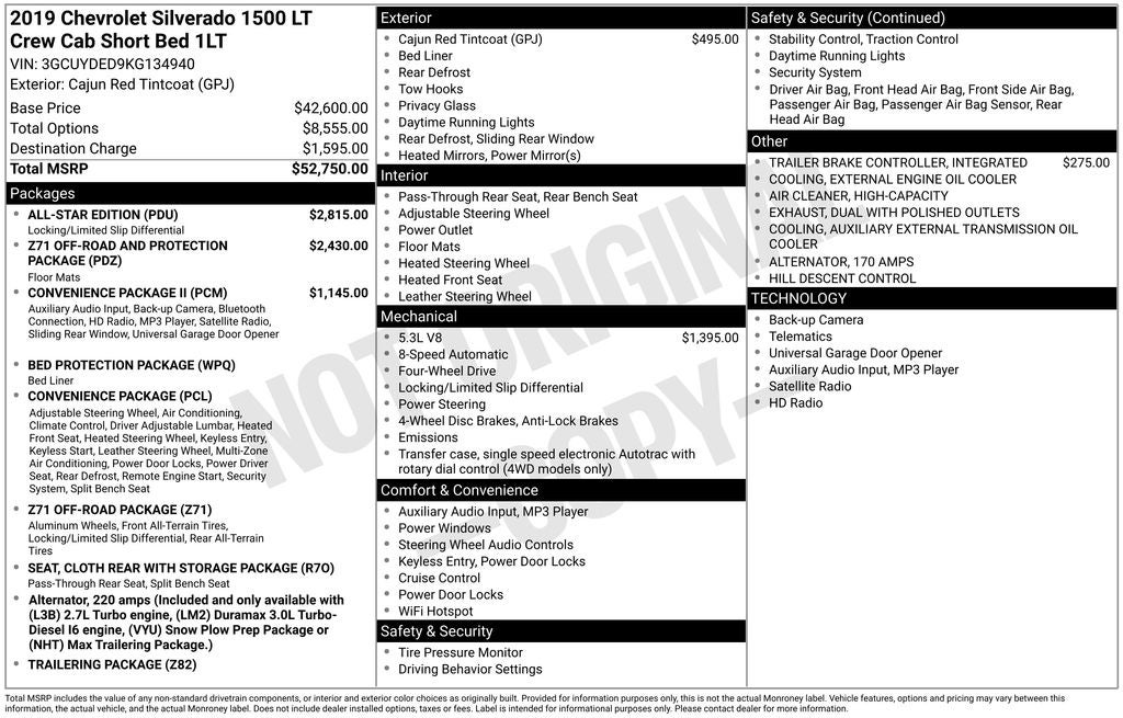2019 Chevrolet Silverado 1500 LT 4WD EcoTec3 5.3L V8 8-Speed Automatic 4D Crew Cab Cajun Red Tintcoat