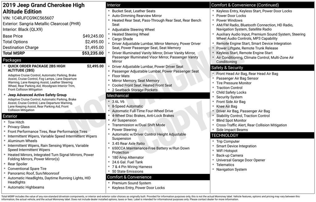Recent Arrival! 2019 Jeep Grand Cherokee High Altitude