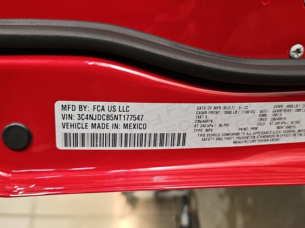 Our 2022 Jeep Compass Limited 4X4 is ready to take you on your next adventure with premium capability and style in Velvet Red Pearl w/ Black Two Tone! Motivated by a 2.4 Liter 4 Cylinder providing 180hp tethered to a 9 Speed Automatic transmission that's at home whether you're commuting or conquering the great outdoors. A Selec-Terrain system adds fantastic functionality to our Four Wheel Drive SUV, which scores nearly 30mpg on the highway. Our Compass also catches your eyes with its bold design backed by LED lighting, fog lamps, roof rails, heated power mirrors, alloy wheels, and a black roof for a dynamic two-tone appearance.