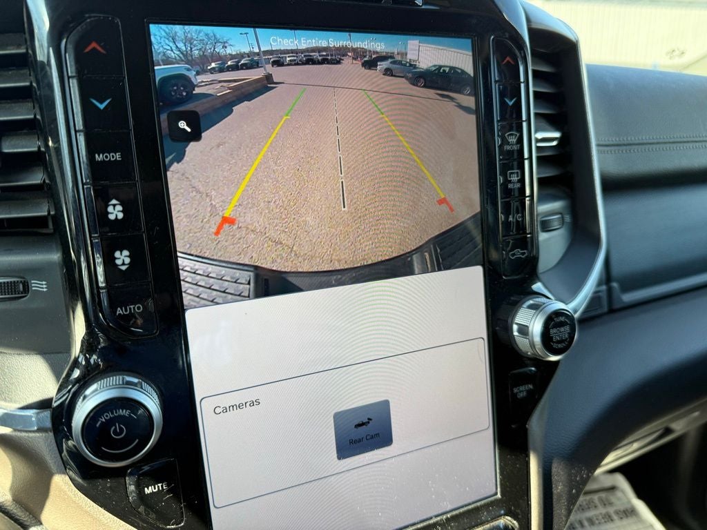 Our Laramie cabin lets you enjoy commanding capability in comfort, thanks to its heated/ventilated leather power front seats, a leather-wrapped heated steering wheel, dual-zone automatic climate control, an interior 115V/400W outlet, keyless access/ignition, power-adjustable pedals w/memory, power sliding rear window, and remote start. Full-color navigation helps you find your way as you stay connected with a 12.0-inch touchscreen, WiFi compatibility, Amazon Alexa compatibility, Android Auto/Apple CarPlay, Bluetooth®, voice control, and Alpine audio.